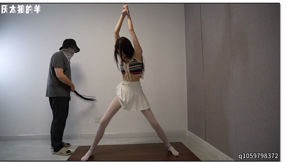 灰太狼的羊 高难度姿势束缚放置,挠痒痒、鞭打、棘轮接连惩罚!口球+皮鞭+镣铐